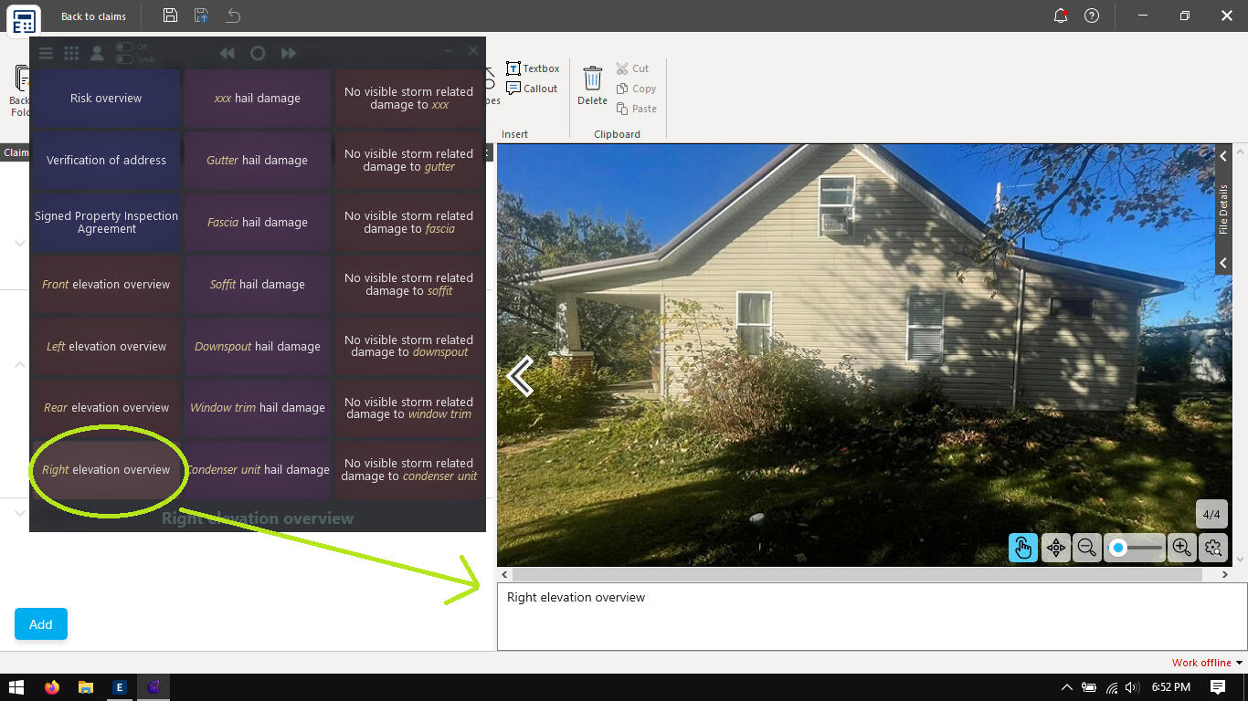 Open up your photos in either Symbility or Xactimate to begin labeling (use the lower toggle switch to select you estimating platform). With a single click on a cell, LabelLobo will instantly label the photo description field; and with Auto Mode turned on, LabelLobo will automatically advance to the next photo after each label is applied.