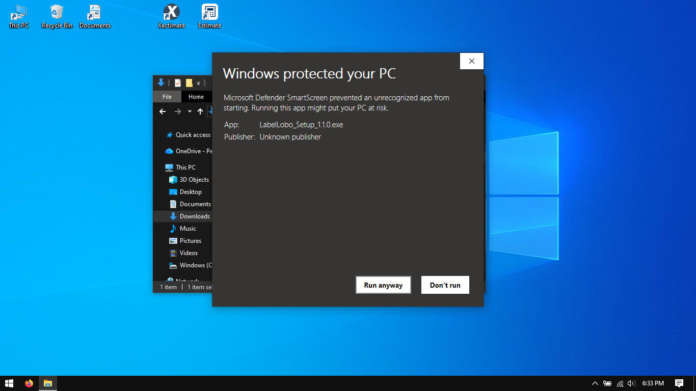 Double-click *LabelLabelSetup1.1.0.exe to begin installation. Some users may get a Windows Defender popup, which is a common occurrence for apps built by indie developers. If this popup appears, you can click More info then Run anyway to continue installation.